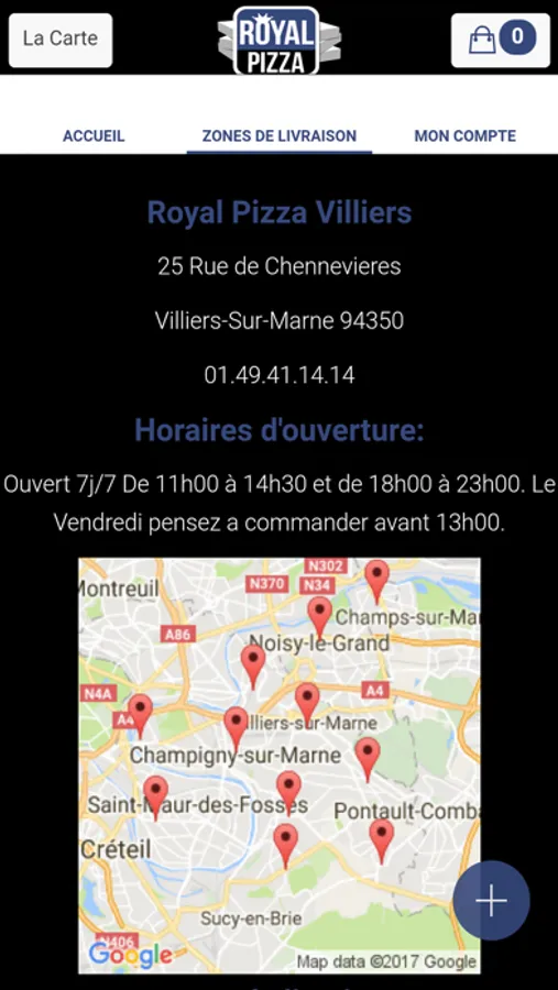 L'application Iphone/Ipad de Royal Pizza Villiers vous permet de commander en ligne ou par téléphone via votre application . Vous pouvez consulter notre carte et choisir vos produits .