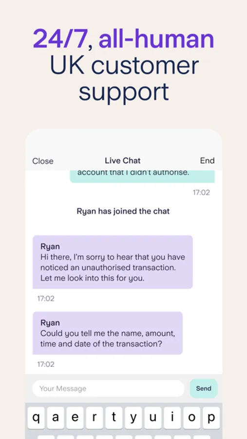 • With 24/7 in-app support from real humans in the UK, we’re always here to help