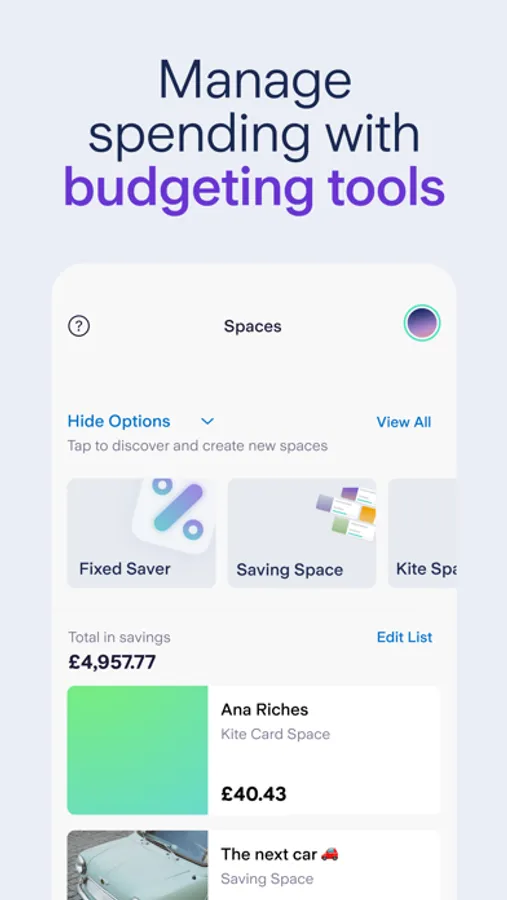 • Save on autopilot – round up payments to the nearest pound and put away the spare change, or set up regular payments into your Spaces.