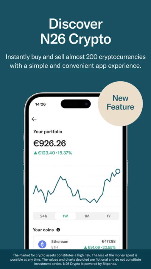 (*N26 Crypto is powered by Bitpanda. Check our website for availability in your country. None of the statements constitute investment advice.)