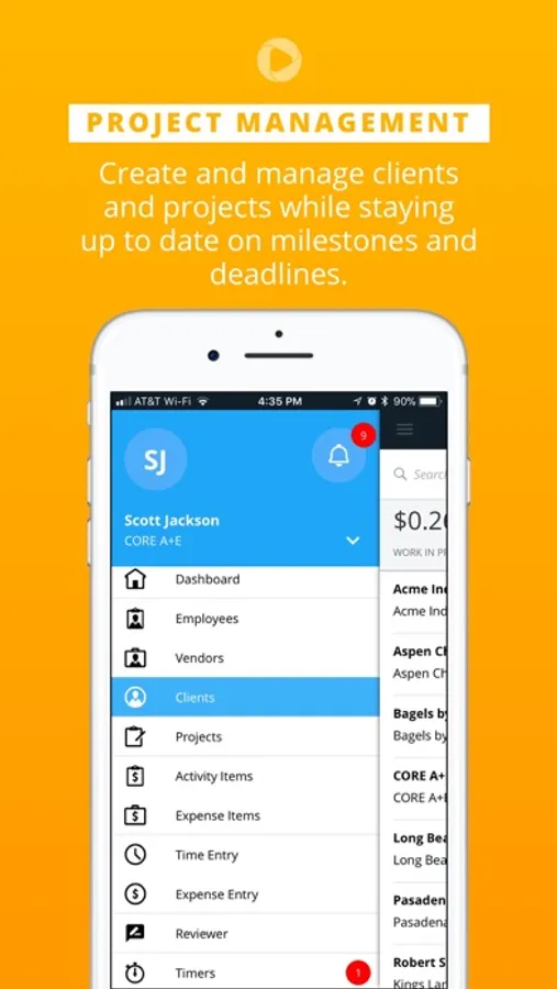 Create and manage clients and projects, and stay up to date on milestones and deadlines.