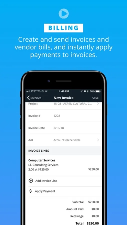 Create and send invoices and vendor bills. Apply payments to invoices instantly.