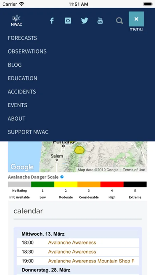 NWAC avalanche forecasts on the go. Check the daily avalanche forecast and submit your observations from the field.