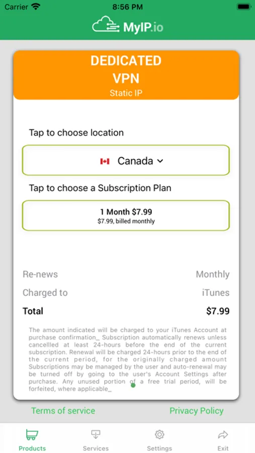 Subscriptions to MyIP.io services can be Monthly or Yearly :