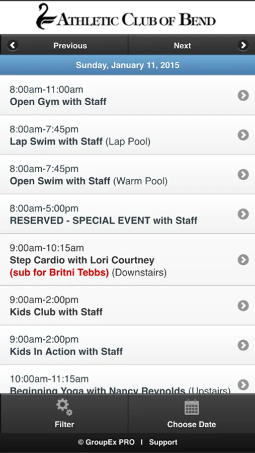 Fitness schedules for the Athletic Club of Bend. Up-to-date, real-time, schedules with current sub information. Share your favorite classes with friends and add upcoming classes to your devices calendar.