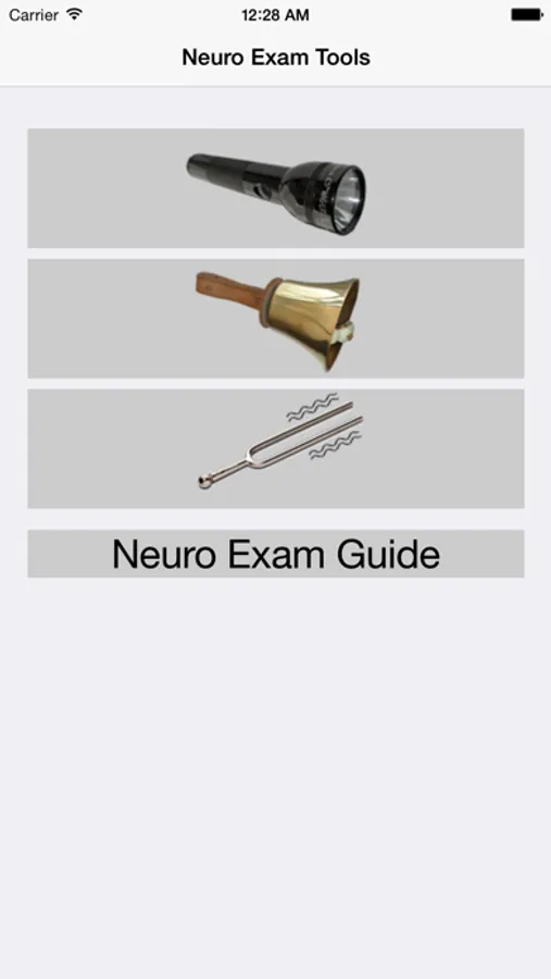 With this app on your phone, you won't need to carry around a flashlight/pen light, bell, or tuning fork for vibration - perfect for on-the-go neurological exams! Save space and weight in your white coat!