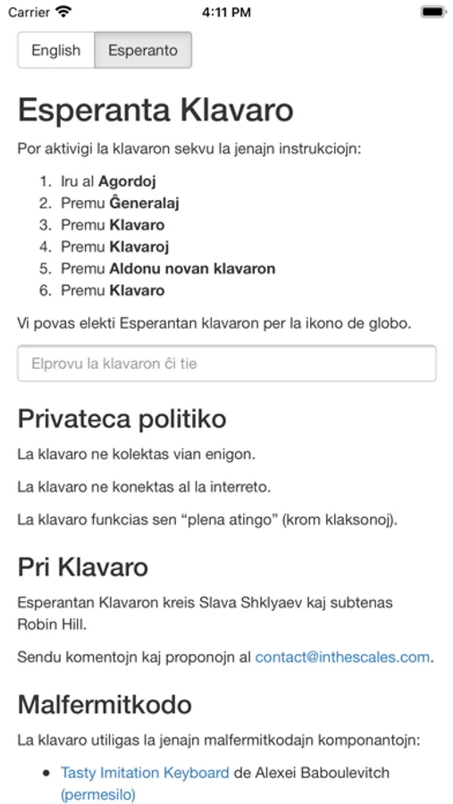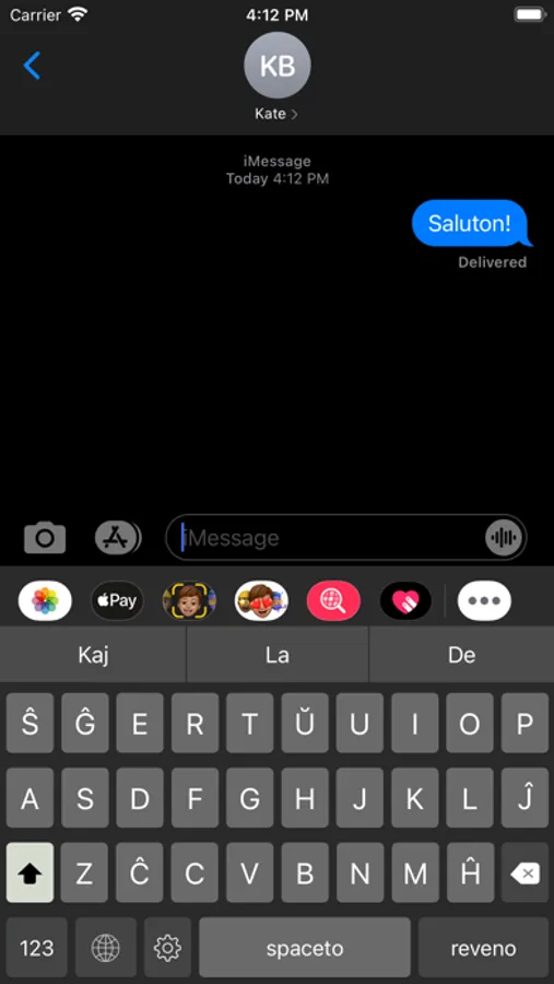 Esperanta klavaro por iOS. Ĝi havas ĉiujn kromsignojn de Esperanto kaj sugestas vortojn, dum vi tajpas.