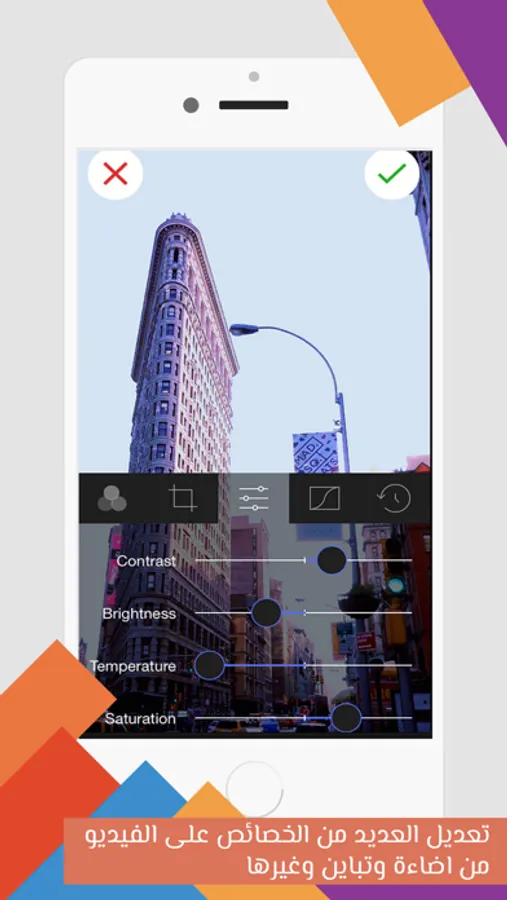 تطبيق مونتاج ومحرر فيديو احترافي , للتعديل والتاثير على مقاطع الفيديو بكل سهولة ومع امكانية تعديل الالوان والاضاءة في الفيديو .