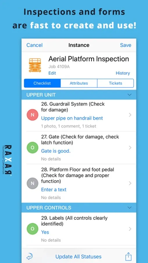 Raxar’s GRAiT (Graphical Real-Time Asset Inspection and Tracking) platform helps enterprise organizations’ field teams eliminate paper and Excel-based workflows. Whether its Safety, Operations, Equipment, Asset, or maintenance management, Raxar's full suite of tools can reduce time and complication for you and your team. Clients in the construction, commercial real estate, aviation, engineering, and safety industries all have tangible results and proven return on investment from using these tools.