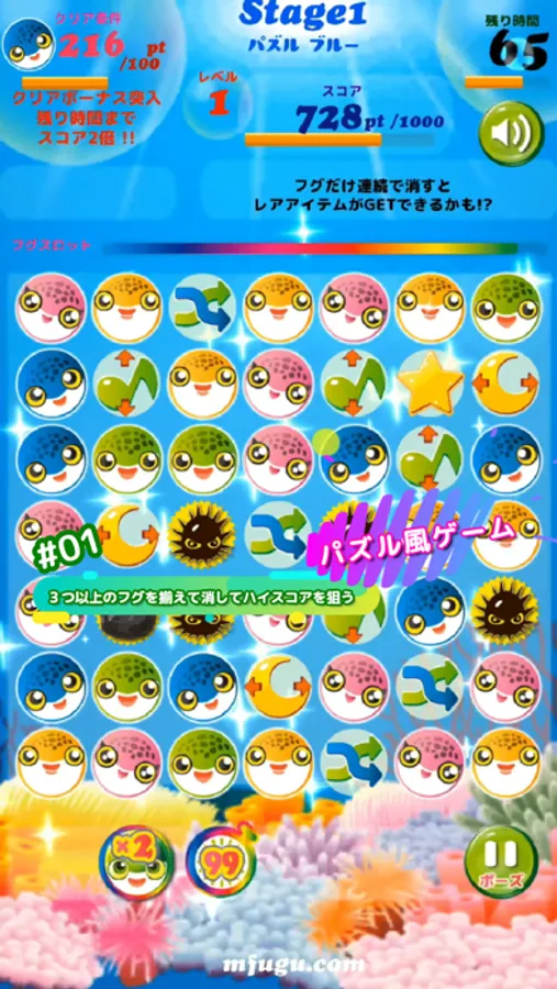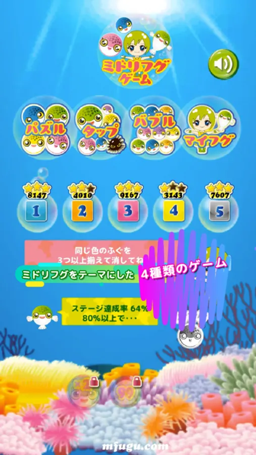 ■The theme of this game is cute fish "Green spotted puffer"(Midorifugu).