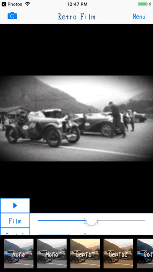 "Retro Film" is the free movie editor apps for making retro effects movies like monotone, sepia and more.