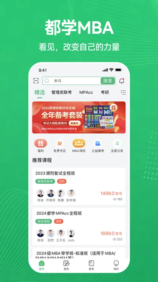 MBA/MPAcc/MEM/MPA/EMBA备考专家,你备考路上的好帮手!包含视频直播课程、海量题库、正版配套教材等,雅典娜智慧学习系统,业内专业的老师和优秀的技术团队助你科学备考。