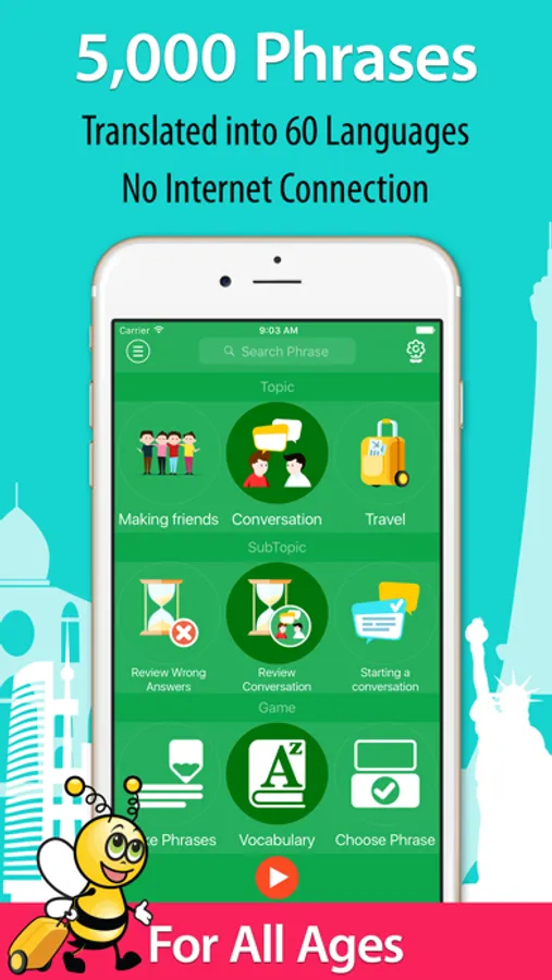 - 20 topics divided into 145 subtopics –– explore new phrases with ease through many subtopics that are commonly used in everyday conversations.