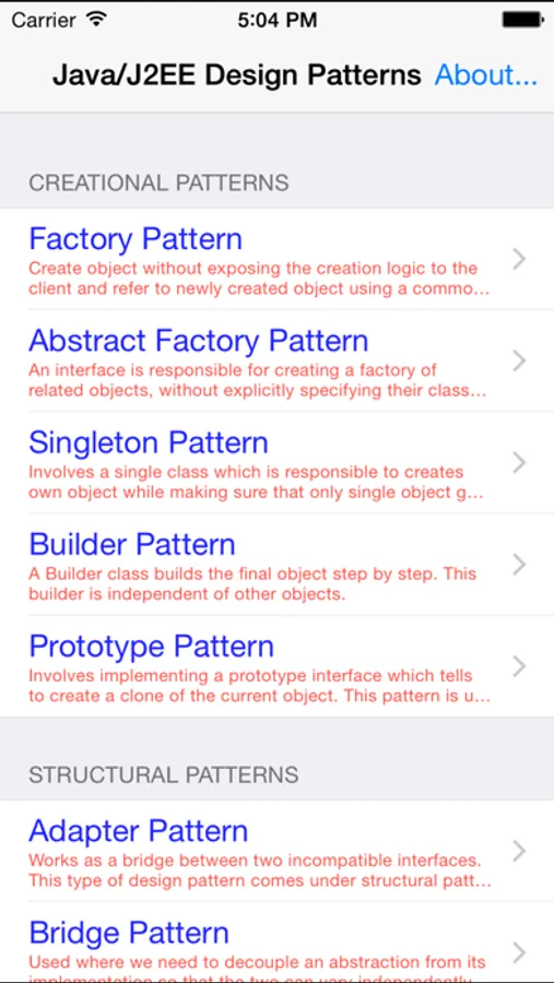 —Design patterns are solutions to general problems that software developers faced during software development. These solutions were obtained by trial and error by numerous software developers over quite a substantial period of time.