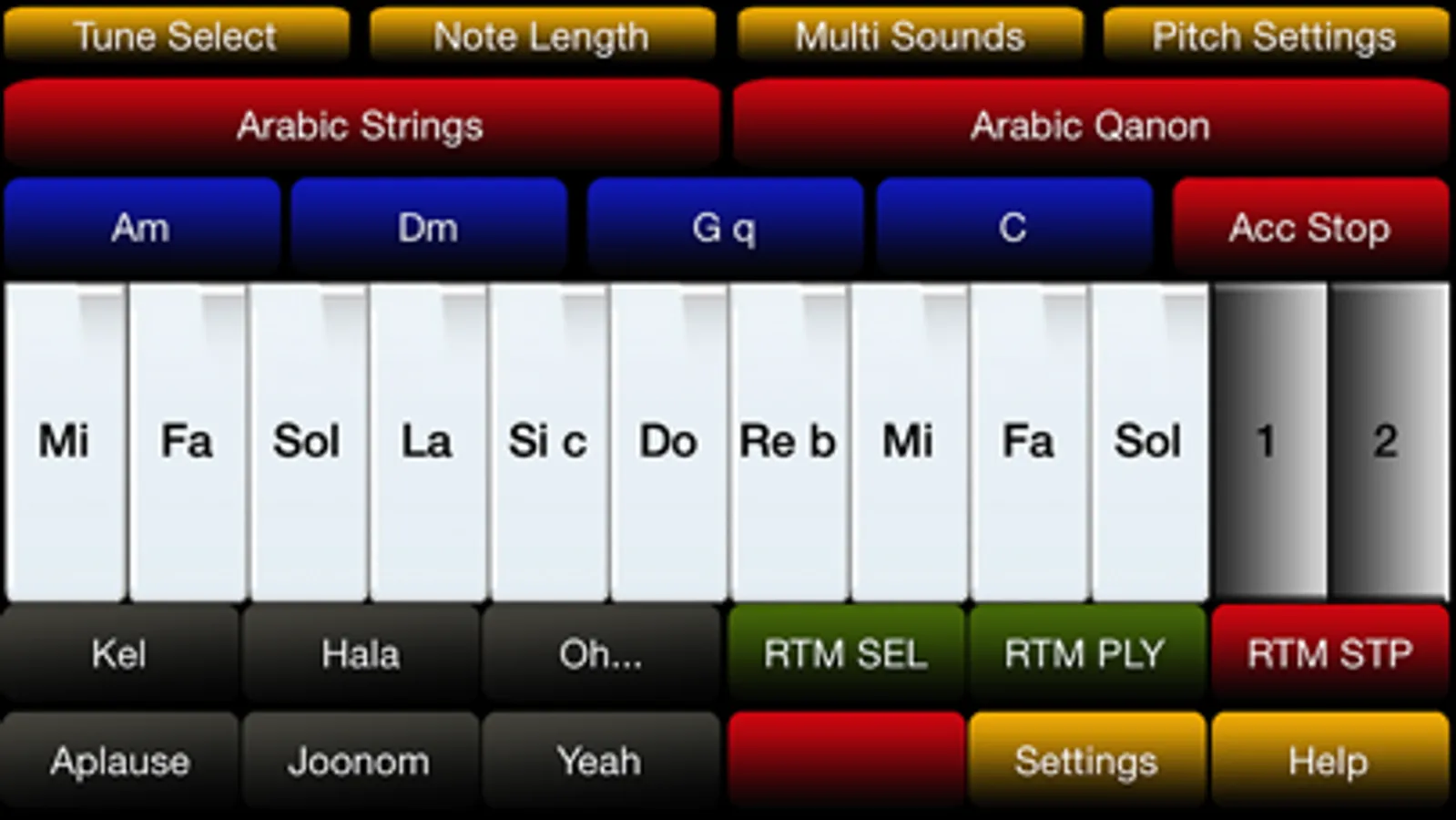 The app simulates Qanon, Oud and Arabic Strings with real sounds.