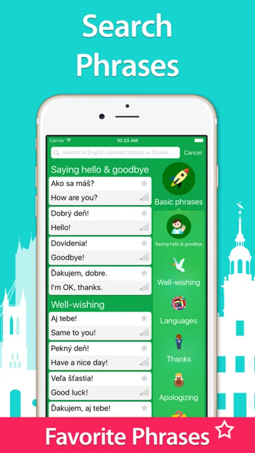 - Search and Save features –– find phrases in your native language or Slovak and save your favorites with a simple tap.