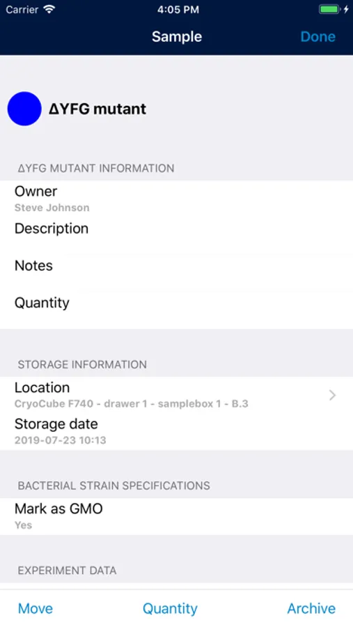 • Scan printed 2D barcodes of samples and sample series to view information and to move or archive items
