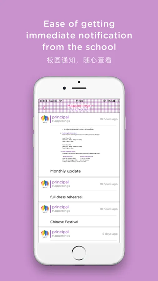 Moments: Never miss a precious moment of your child's learning journey in school as teachers share memorable photos with you over our app! Like a specially tailored Facebook album for your child, you can comment and communicate with teachers as you deem fit.