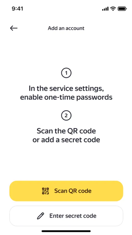 Yandex Key doesn’t need internet connection to add accounts and generate one-time passwords, and you don't need to wait for an SMS with your password.