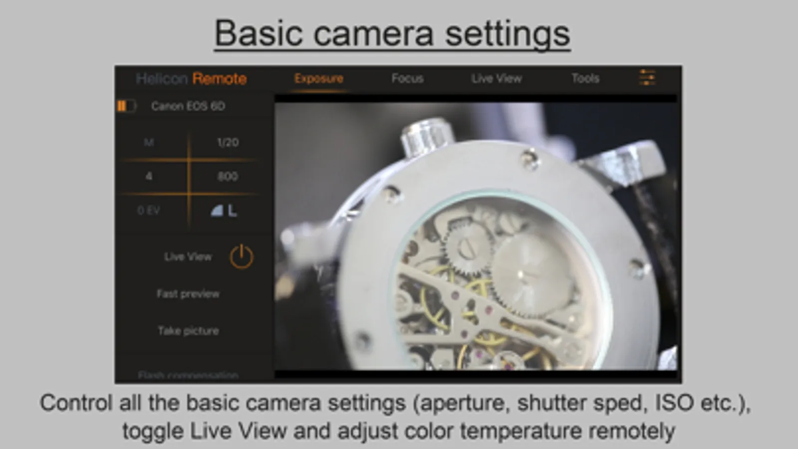 Helicon Remote is a utility for tethered shooting and camera remote control compatible with all recent Nikon and Canon DSLR cameras.