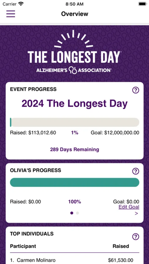 The Longest Day mobile app is brought to you by the Alzheimer's Association® and is only available to current participants of The Longest Day. If you haven't registered for this year's event, please do so at alz.org/tld before using the app.
