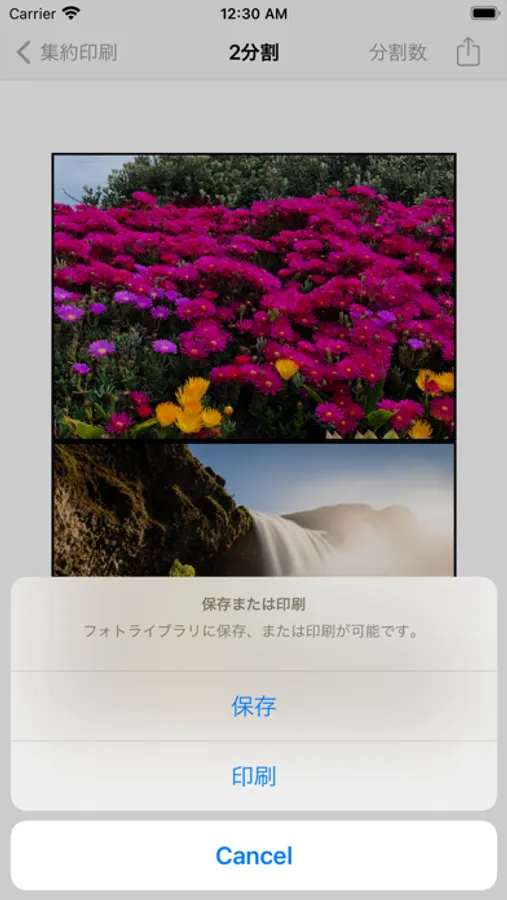 縦横自由なサイズにトリミングして、1枚の写真用紙を1分割、2分割、4分割して写真を作成できます。作った写真を印刷して切り離せば小さい写真の完成です。また、その画像をカメラロールに保存することも可能です。料理の写真や小物の写真など思い出をまとめて1枚の写真にできるので、画像を送ったり、ブログを作るときなど活用して下さい。