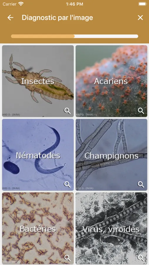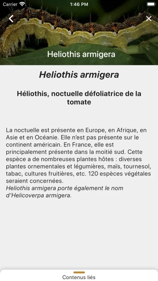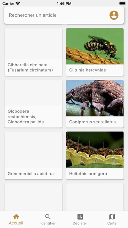 Cette application informative sur les principaux organismes nuisibles possède deux entrées :