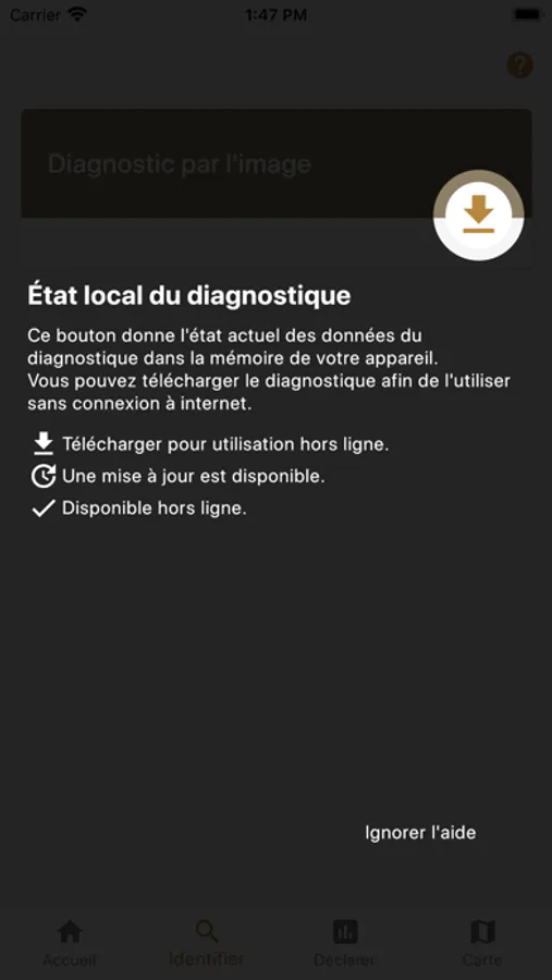 - « Mise à jour » assure l’actualisation de l'intégralité de la base de données embarquée permettant une utilisation même hors connexion.