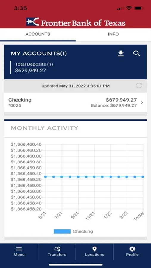 Start banking wherever you are with Frontier Bank of Texas Mobile! Available to all Frontier Bank of Texas online banking customers, Frontier Bank of Texas Mobile allows you to check balances, make transfers, pay bills, make deposits, and find locations. Need to find a Branch or ATM closest to you? With Find Near Me, Frontier Bank of Texas Mobile will discover your location and provide you with addresses and phone numbers on the fly.