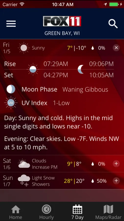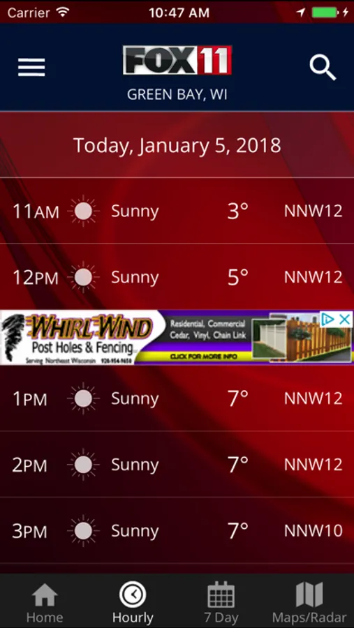 Never let the weather catch you by surprise again. FOX 11's trusted Severe Weather Team delivers Northeast Wisconsin's most accurate hour-by-hour forecast for the next day and for the week ahead. Unlike other weather apps, you'll get a local forecast that is customized for you.