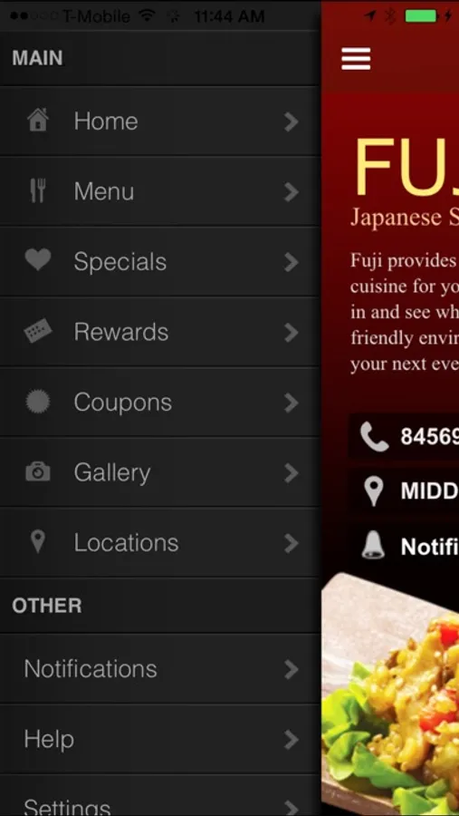 The Fuji Japanese Steakhouse & Sushi Bar app provides:
