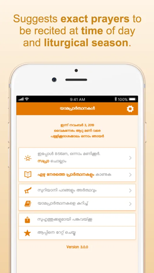 A collection of Malayalam Liturgy of the Hours ( Yaama Praarthanakal) and Sacramentals used in the Syro-Malabar Catholic Church. For your convenience, the app employs algorithms to determine the prayer combinations to be used for each day (based on the nine Liturgical seasons, position of weeks, and day of the week) and presents you with a ready-to-read fully-composed text off the screen.