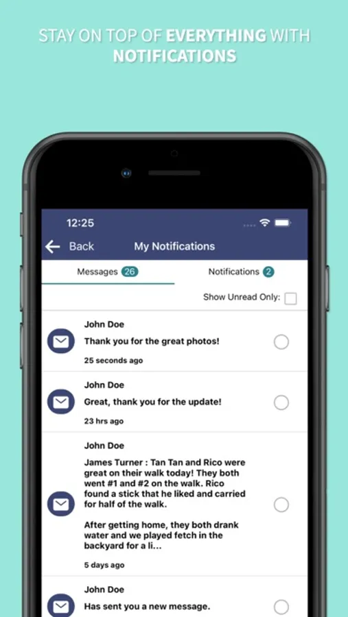 Staff members can use the app to quickly review their scheduled events, complete services and send updates to clients.