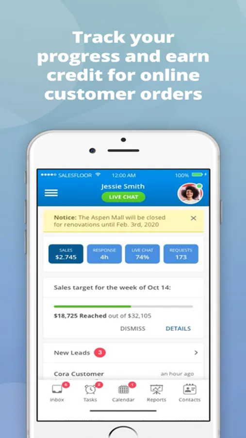 - Reach out to customers via live chat, e-mail, text messaging or social media