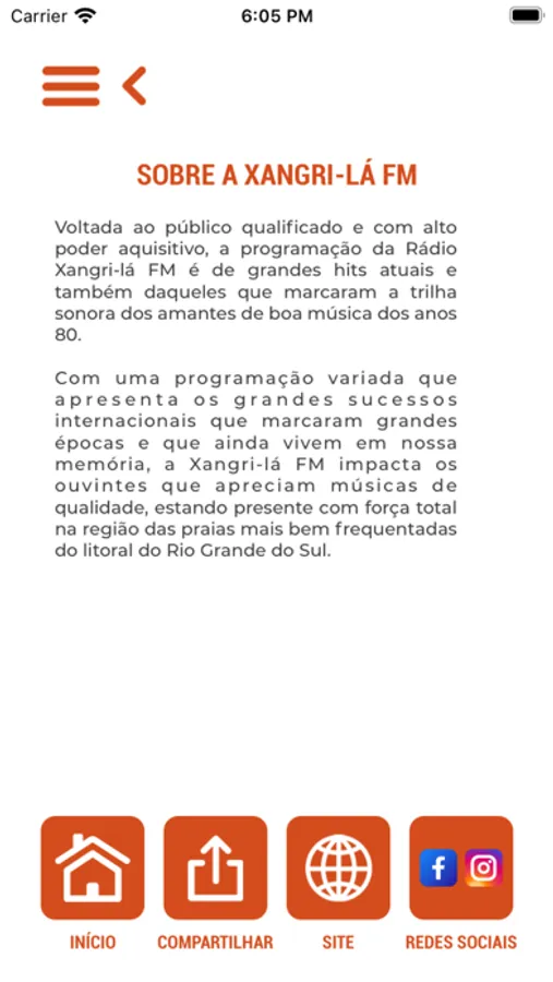 Aplicativo da Rádio Xangri-lá FM da Rede Pampa de Comunicação.