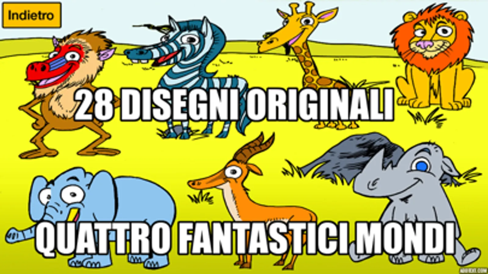 Avrai a disposizione quattro diverse ambientazioni con tanti animali da colorare!