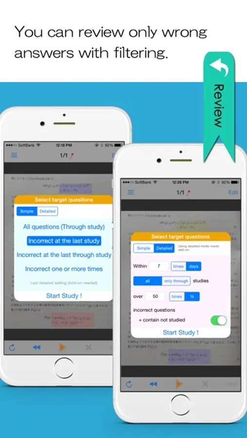 You can select conditions for questions to study. 'Answer wrong on the last study' , 'Answer wrong more than one time' and so on.