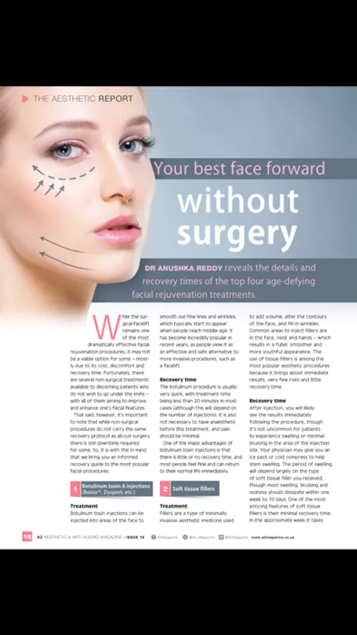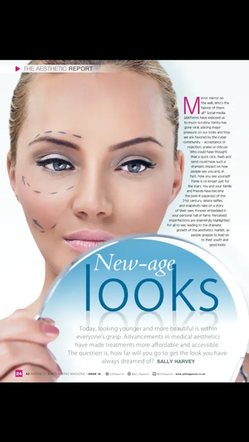 A2 Aesthetic & Anti-Ageing Magazine, your South African go-to magazine dedicated to aesthetics, anti-ageing and cosmetic surgery. We are the pit-stop for our aesthetically minded readers who are already on, or about to embark on their aesthetic journey.