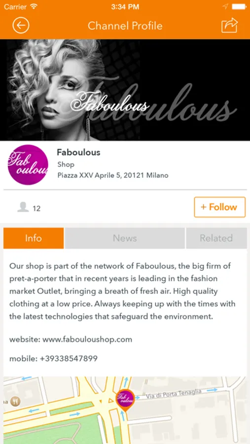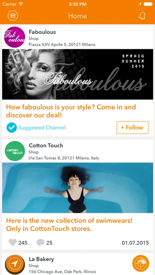 While you walk, thanks to the APP radar, you can discover channels of stores, businesses, events, offices and IoT devices around you and start following them.
