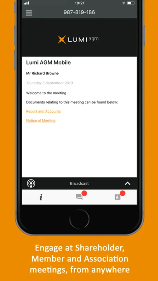 Lumi AGM provides you with a secure opportunity to vote, submit questions, watch the live broadcast or check out meeting information. Whether it’s a Shareholder, Member or Association type of meeting, Lumi AGM makes it easy to engage with organisers and other attendees. And best of all… You can take part without actually attending in person.