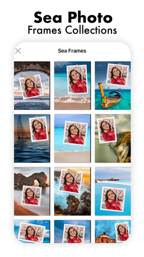 How to Apply: Select a photo from the gallery. Wide range of styles and different Sea Photo Frames for any picture. Adjust position, size, angle of your photo by just finger touch.