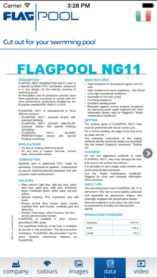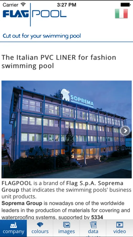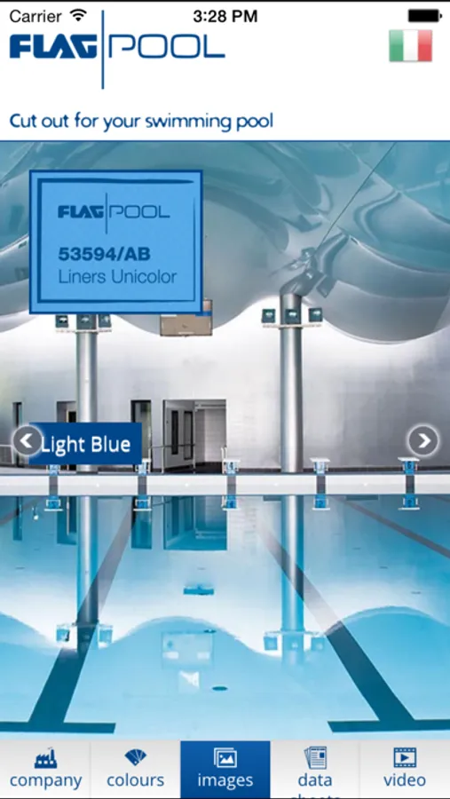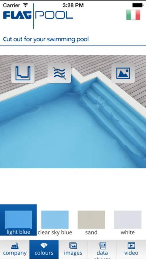 The software allows displaying all colours available and the gallery of the swimming pools already created.