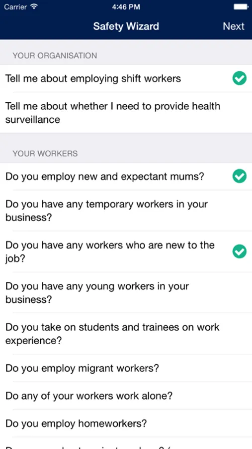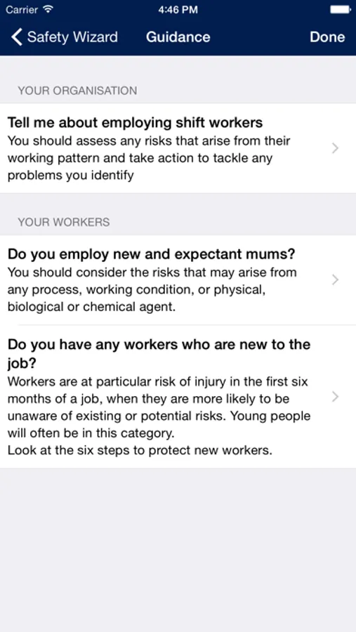 Simply select the statements which are relevant to your business and the app will provide the information that you need. You can then share the information via email or social media.