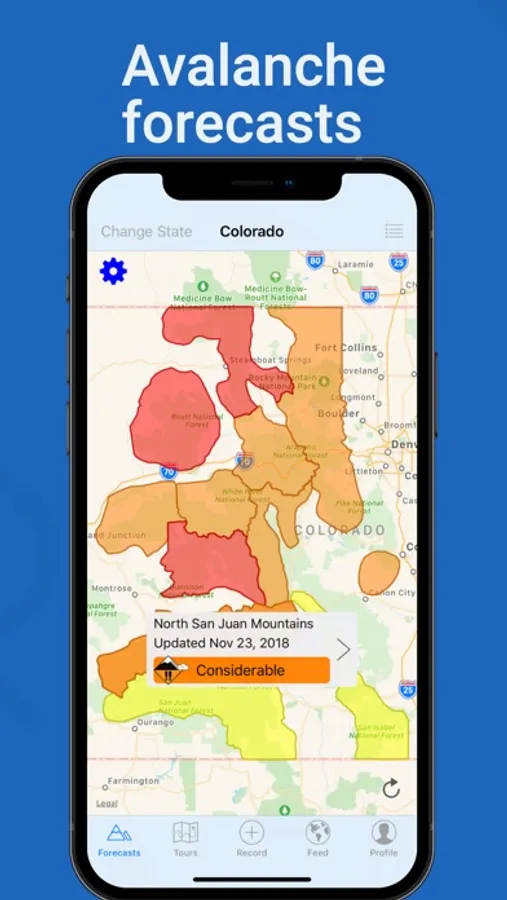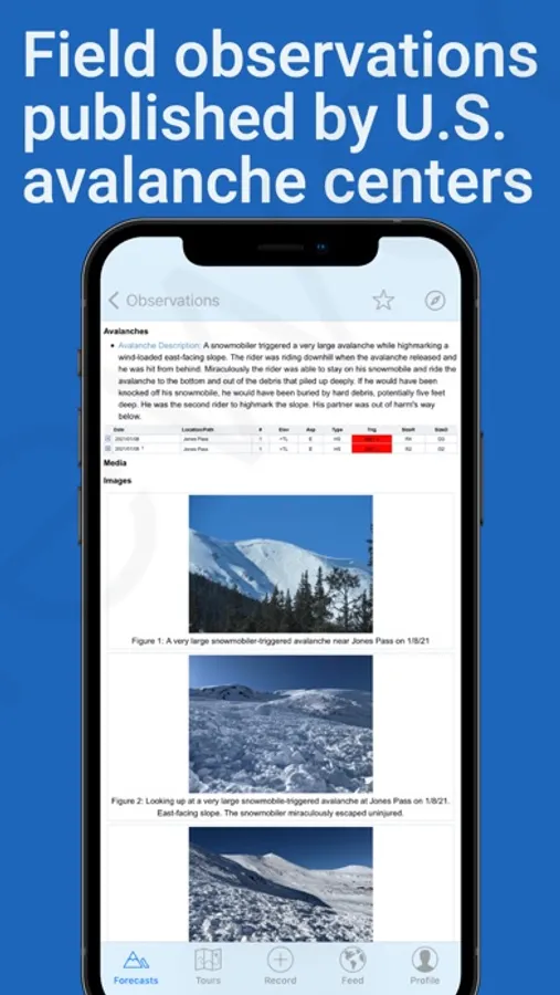 • Avalanche forecasts for all U.S. and Canadian zones.