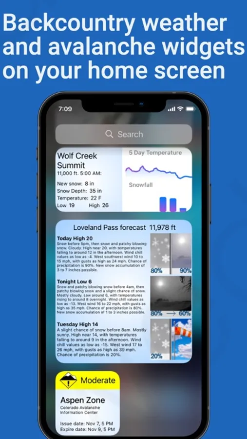 • Display backcountry weather and avalanche forecast widgets directly on your Home Screen