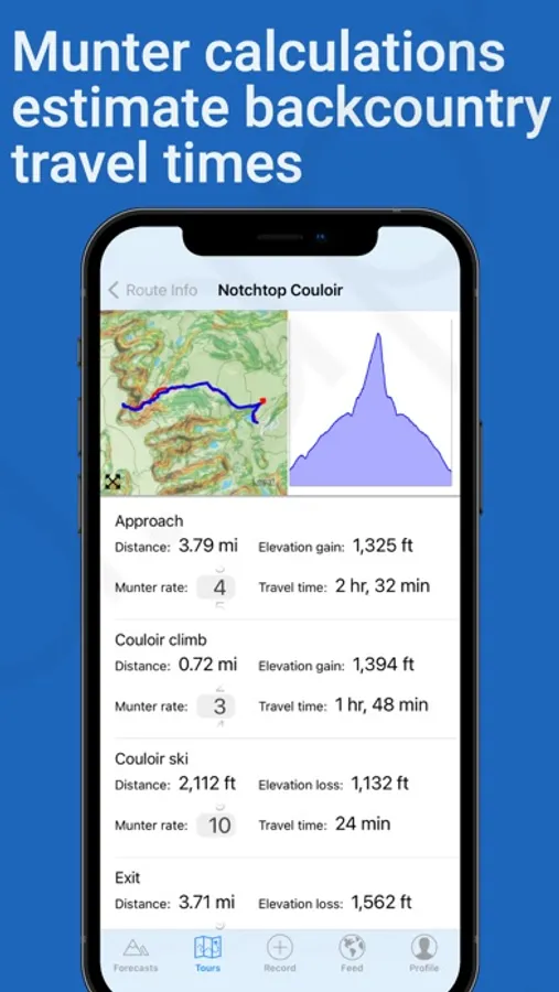 • Munter calculator estimates backcountry travel times of your GPX tracks based on tour distance and elevation gain. Adjust the rate of travel for each segment of your tour depending on conditions and fitness level.