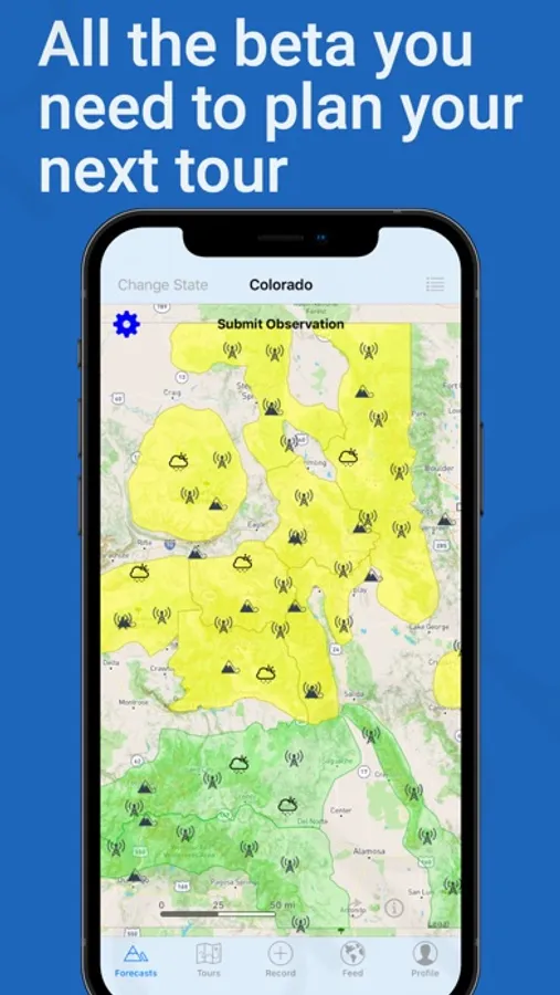 • Record your tracks and share snowpack observations with fellow backcountry users.