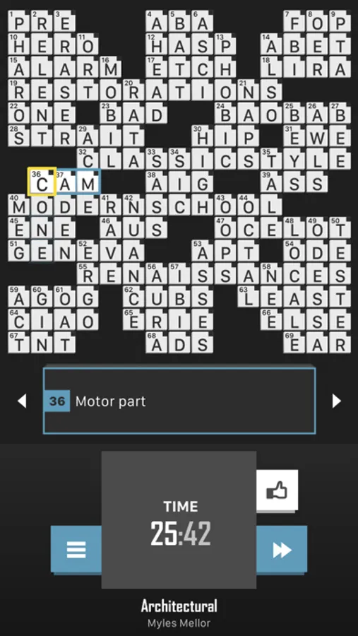 - Polished User Interface: easy and modern way to navigate through the puzzle cells and clues.