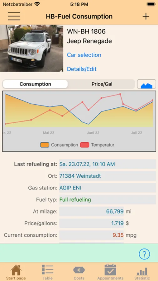 With HB-fuel consumption you manage easily your fuel and car costs.