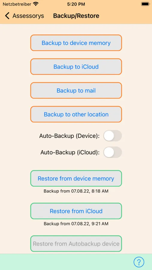 - Backup / Restore locally, iCloud, iCloudDrive, Mail.